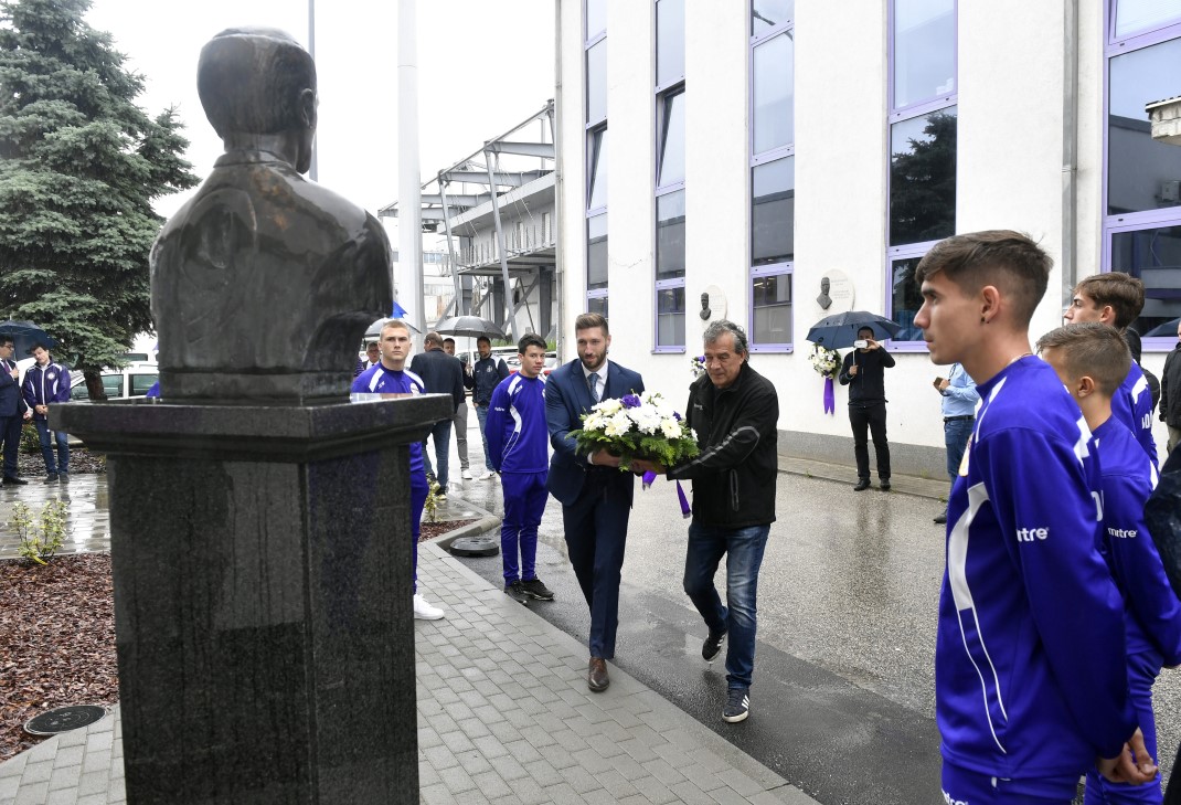 Nyitókép: Berki Krisztián olimpiai bajnok, háromszoros világbajnok és hatszoros Európa-bajnok tornász (b) és Ancsin János, az UTE szakmai igazgatója (j) megkoszorúzza Bene Ferenc szobrát az UTE 135. születésnapján rendezett megemlékezésen a Megyeri úton 2020. június 16-án. MTI/Máthé Zoltán