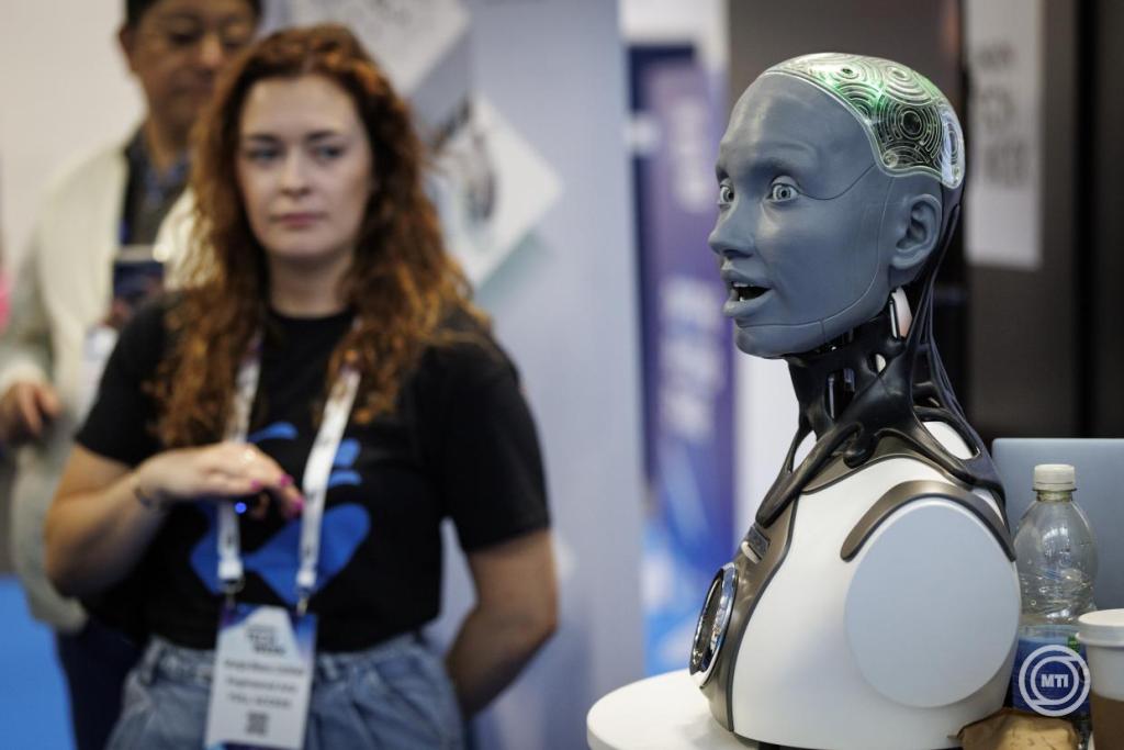 Borítókép: Emberi érzelmeket fejez ki arcjátékával Ameca, az Engineered Arts brit cég mesterséges intelligencia irányította humanod robotja a Londoni Technologiai Hét (London Tech Week) című technológiai rendezvényen 2025. június 9-én. MTI/EPA/Tolga Akmen
