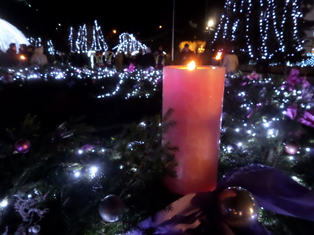 Megérkezett Miskolcra a Betlehemi Láng. Kiss János alpolgármester erről gyújtotta meg a város adventi koszorújának rózsaszín gyertyáját.