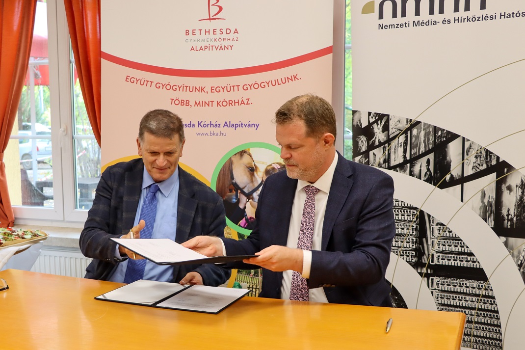 A partnerségi szerződést dr. Velkey György János, a Bethesda Gyermekkórház főigazgatója, valamint Koltay András, az NMHH elnöke október 14-én, ünnepélyes keretek között látta el kézjegyével. A megállapodás egy régóta meglévő szakmai kapcsolatot erősített meg, amelyben most a két intézmény stratégiai szinten hangolja össze kutatási és szemléletformáló tevékenységét a digitális eszközhasználat gyermekek fejlődésre gyakorolt hatásainak feltárása, valamint a megelőzés támogatása érdekében.
