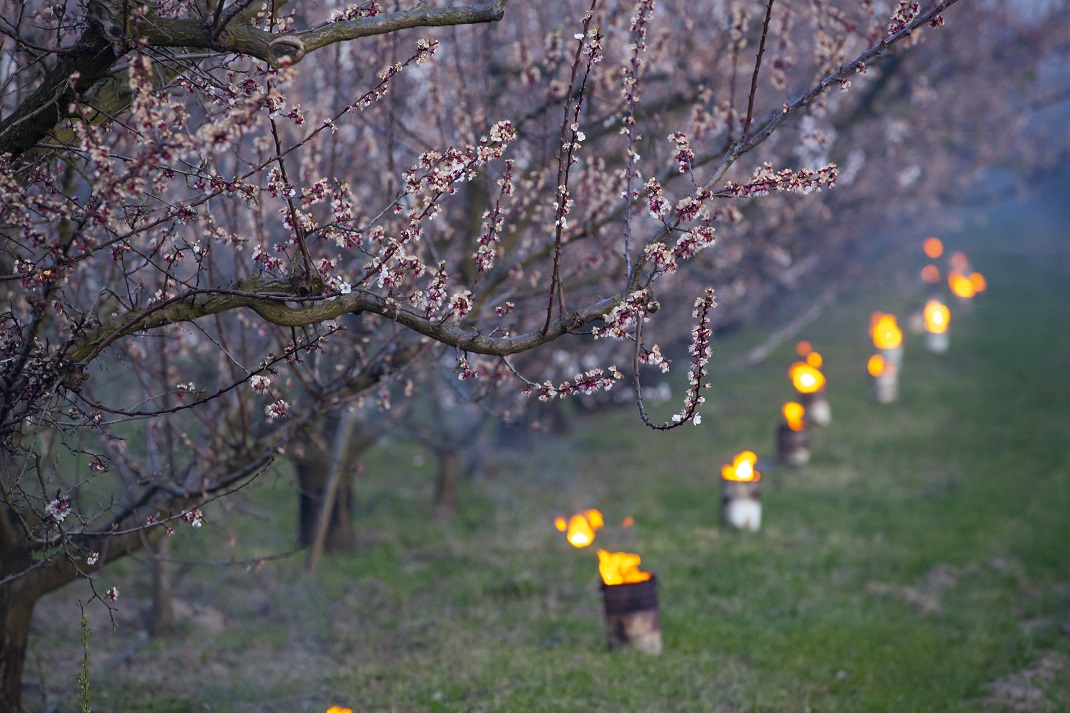 Nyitókép: Kajszibarackfákat melegítenek tüzekkel a fagy ellen védekezve egy Balatonvilágos közelében fekvő gyümölcsösben. MTI/Varga György
