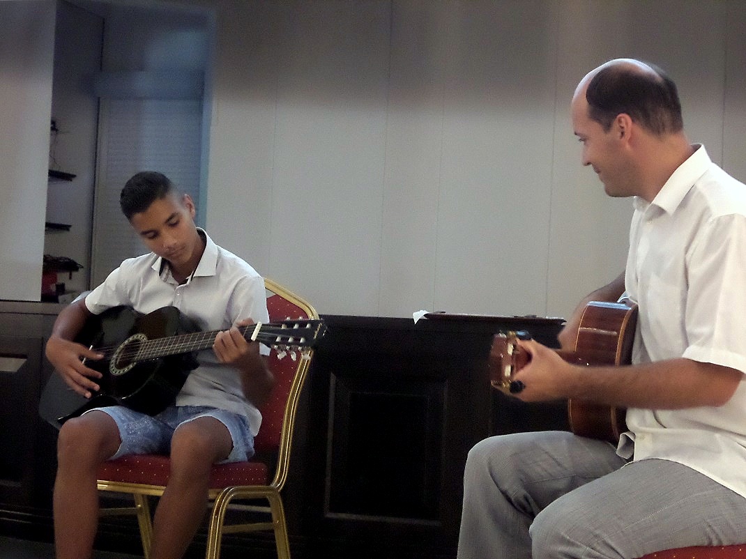 Viktor gitártudását is megmutatta a közönségnek kedden. Bónusz ajándék volt számára, hogy – az éppen Miskolcon tartózkodó – Vihula Mihajlo gitárművésszel együtt zenélhetett.