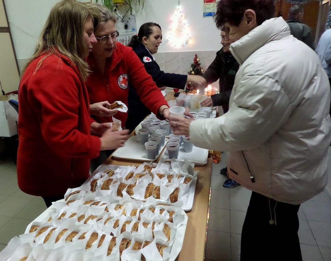 Szintén hagyománynak számít már a Szervezetnél a karácsonyi, közterületen történő meleg ételosztás. Most 200 adag gulyáslevest osztott szét a Vöröskereszt a rászorulók között. A hajléktalanok, kisnyugdíjasok, nagycsaládosok szaloncukrot és forró teát is kaptak. Ételosztás legközelebb december 29-én lesz, délelőtt 11.30-tól Miskolcon, a Sarolta utca és Soltész Nagy Kálmán utca közötti parkos területen.