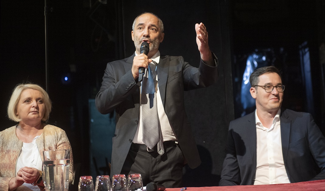 Nyitókép: Rudolf Péter, a Vígszínház igazgatója beszél (k) a színház 125. évadának évadhirdető sajtótájékoztatóján 2020. július 1-jén. Mellette Karácsony Gergely főpolgármester (b3) és Krucsainé Herter Anikó, az EMMI kulturális fejlesztésekért és finanszírozásért felelős helyettes államtitkára. MTI/Illyés Tibor.
