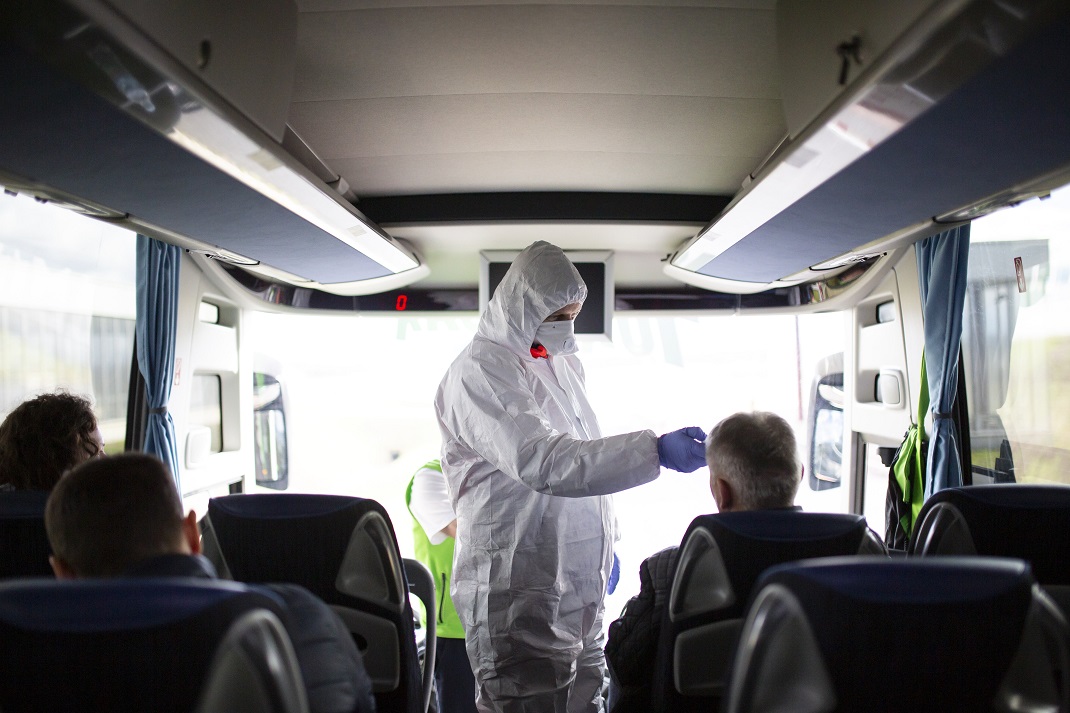 Nyitókép: Török Róbert mentőápoló ellenőrzi egy érkező busz utasait a koronavírus-járvány miatt a letenyei határállomáson 2020. február 5-én. A koronavírus-járvány miatt hat közúti határátkelőhelyen kiemelten ellenőrzik az érkező utasokat, különösen a kínai állampolgárokat. MTI/Varga György