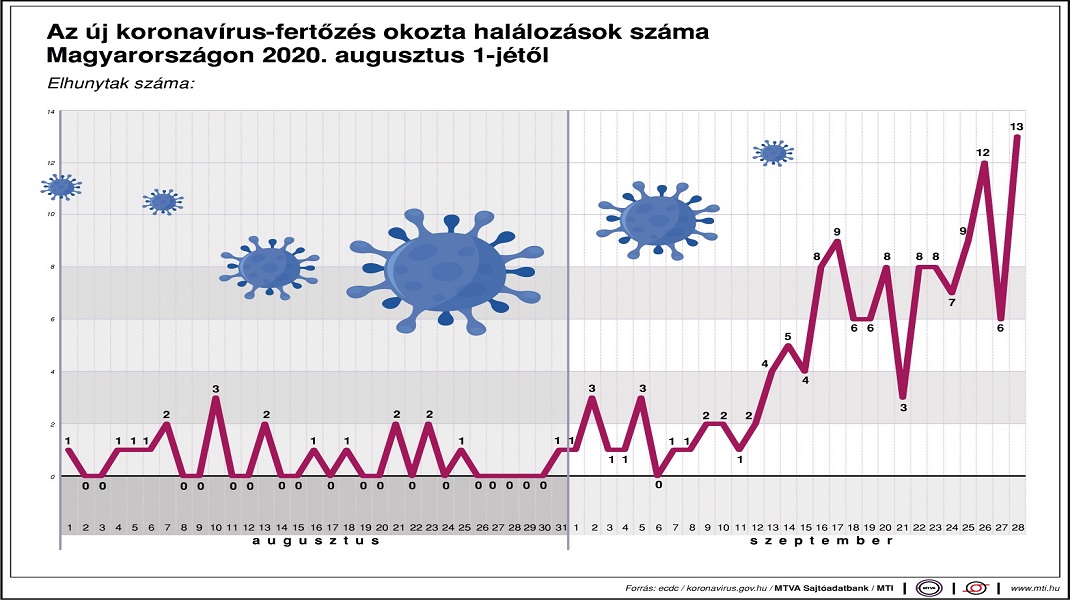 Elhunyt tizenhárom beteg, és újabb 702 magyar állampolgárnál mutatták ki a koronavírus-fertőzést – közölte a koronavirus.gov.hu hétfőn.