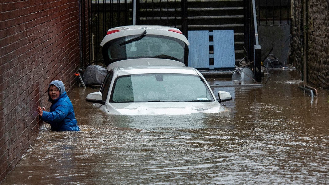 Ellepte a víz ezt a dél-walesi kisvárost. A hétvégente egyébként vásárlók tömegétől hangos főutca most kihalt, az autók is alig tudnak közlekedni a majd’ egy méteres vízben. Az áradás magával ragadta a kávéházi teraszok székeit és asztalait is. A várost átszelő Taff folyó kilépett medréből, és elöntötte még a magasabban fekvő területeket is.
