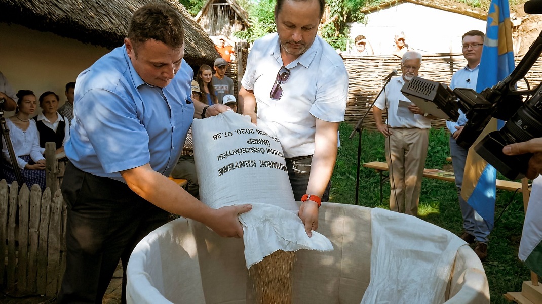 A „Magyarok Kenyere – 15 millió búzaszem” projekt keretében a Kárpát-medencei búzaösszeöntés először került sor a partiumi földek idei aranyának elegyítésére.