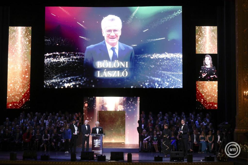 Borítókép: Az életműdíjjal kitüntetett Bölöni László erdélyi magyar BEK-győztes futballista, edző beszél az M4 Sport-Az Év Sportolója Gálán a Magyar Állami Operaházban 2025. január 13-án. Mellette Sulyok Tamás köztársasági elnök. MTI/Hegedüs Róbert